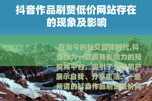 在当今的社交媒体时代,抖音作为一款极具影响力的短视频平台,吸引了无数用户展示自我、分享生活,一些所谓的抖音作品刷赞低价网站也悄然出现。