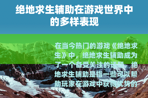 在当今热门的游戏《绝地求生》中,绝地求生辅助成为了一个备受关注的话题,绝地求生辅助是指一些可以帮助玩家在游戏中获得优势的工具或程序。