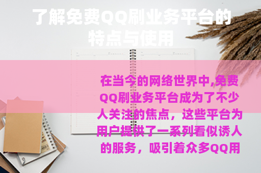 在当今的网络世界中,免费QQ刷业务平台成为了不少人关注的焦点,这些平台为用户提供了一系列看似诱人的服务,吸引着众多QQ用户的目光。