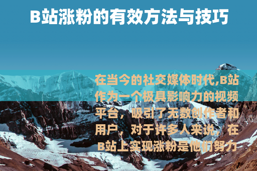 在当今的社交媒体时代,B站作为一个极具影响力的视频平台,吸引了无数创作者和用户,对于许多人来说,在B站上实现涨粉是他们努力追求的目标,如何才能在B站上有效地涨粉呢? 质量是关键,要制作出有创意、有趣且有价值的视频内容,无论是搞笑、知识科普、美食制作还是游戏攻略等各种类型,都要确保能够吸引观众的眼球并让他们产生共鸣,投入足够的时间和精力去策划、拍摄和剪辑,以呈现出高质量的作品。