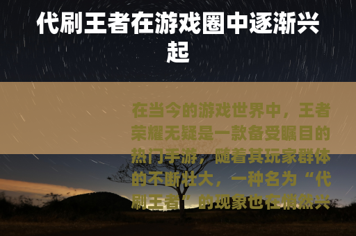 在当今的游戏世界中,王者荣耀无疑是一款备受瞩目的热门手游,随着其玩家群体的不断壮大,一种名为“代刷王者”的现象也在悄然兴起。