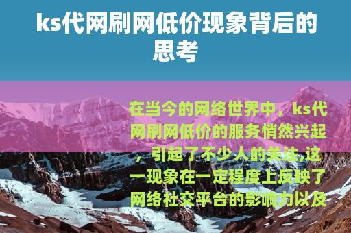 在当今的网络世界中,ks代网刷网低价的服务悄然兴起,引起了不少人的关注,这一现象在一定程度上反映了网络社交平台的影响力以及人们对于数据和流量的追求。