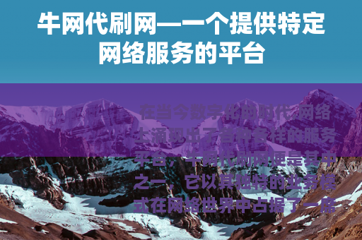 在当今数字化的时代,网络上涌现出了各种各样的服务平台,牛网代刷网便是其中之一,它以其独特的业务模式在网络世界中占据了一席之地。