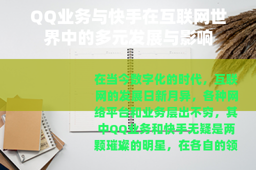 QQ业务和快手在互联网的世界中都有着不可替代的地位和作用,它们以各自独特的方式满足了用户的需求,创造了丰富的价值,在未来的发展中,它们将继续紧跟时代的步伐,不断创新和发展,为用户带来更多的惊喜和改变,成为人们数字生活中不可或缺的一部分,无论是在社交、娱乐、文化传播还是商业等领域,QQ业务和快手都将继续发挥重要的作用,推动互联网行业不断向前发展,为社会的进步和发展做出更大的贡献。