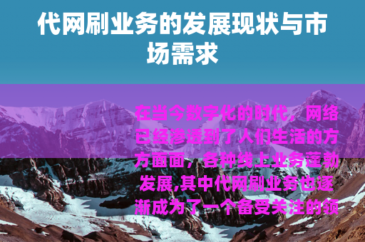 在当今数字化的时代,网络已经渗透到了人们生活的方方面面,各种线上业务蓬勃发展,其中代网刷业务也逐渐成为了一个备受关注的领域。