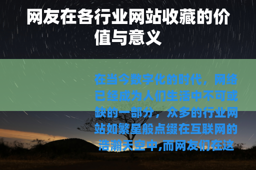 在当今数字化的时代,网络已经成为人们生活中不可或缺的一部分,众多的行业网站如繁星般点缀在互联网的浩瀚天空中,而网友们在这些网站上的收藏行为也具有着独特的价值和意义。