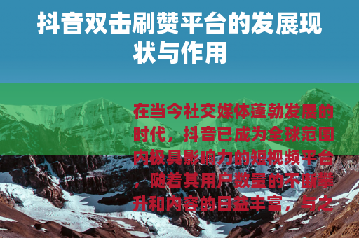 在当今社交媒体蓬勃发展的时代,抖音已成为全球范围内极具影响力的短视频平台,随着其用户数量的不断攀升和内容的日益丰富,与之相关的各种服务也应运而生,其中抖音双击刷赞平台便是备受关注的一种。