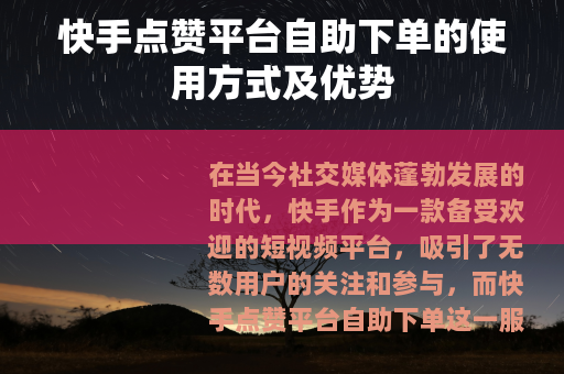 在当今社交媒体蓬勃发展的时代,快手作为一款备受欢迎的短视频平台,吸引了无数用户的关注和参与,而快手点赞平台自助下单这一服务也随之兴起,为许多用户提供了便利和独特的体验。