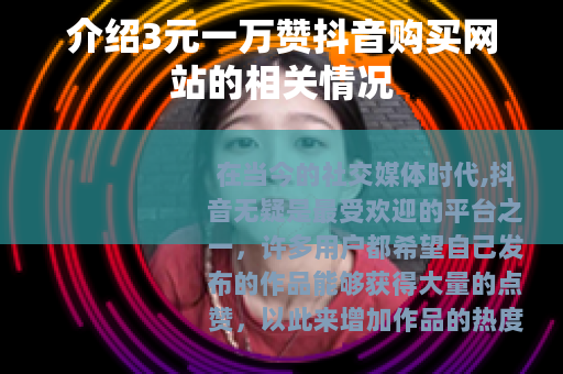 在当今的社交媒体时代,抖音无疑是最受欢迎的平台之一,许多用户都希望自己发布的作品能够获得大量的点赞,以此来增加作品的热度和曝光度,而在网络上,出现了一些声称可以提供3元一万赞的抖音购买网站。