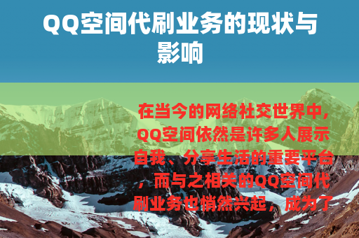 在当今的网络社交世界中,QQ空间依然是许多人展示自我、分享生活的重要平台,而与之相关的QQ空间代刷业务也悄然兴起,成为了一个备受关注的现象。