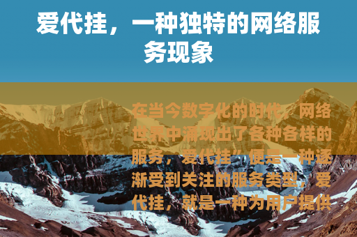 在当今数字化的时代,网络世界中涌现出了各种各样的服务,爱代挂”便是一种逐渐受到关注的服务类型。
