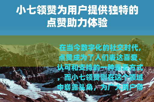 小七领赞是一个专注于为各类社交平台用户提供点赞服务的平台,它的出现,满足了许多用户对于自己发布的内容能够获得更多关注和认可的需求,无论是在朋友圈、微博、抖音还是其他热门社交平台上,用户都希望自己精心创作的文字、图片或视频能够得到他人的点赞,从而感受到一种成就感和满足感,小七领赞正是抓住了这一用户心理,致力于帮助用户实现这一目标。