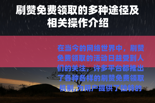 在当今的网络世界中,刷赞免费领取的活动日益受到人们的关注,许多平台都推出了各种各样的刷赞免费领取机制,为用户提供了独特的体验和机会。