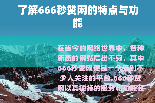在当今的网络世界中,各种新奇的网站层出不穷,其中666秒赞网便是一个受到不少人关注的平台,666秒赞网以其独特的服务和功能在网络的众多角落中占据了一席之地。