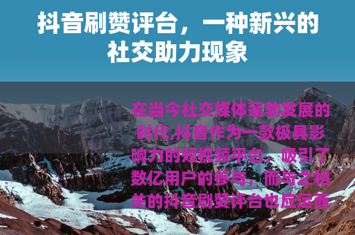 在当今社交媒体蓬勃发展的时代,抖音作为一款极具影响力的短视频平台,吸引了数亿用户的参与,而与之相关的抖音刷赞评台也应运而生,成为了一个备受关注的话题。