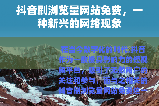 在当今数字化的时代,抖音作为一款极具影响力的短视频平台,吸引了无数用户的关注和参与,而与之相关的抖音刷浏览量网站免费这一现象也逐渐兴起,成为了许多人热议的话题。