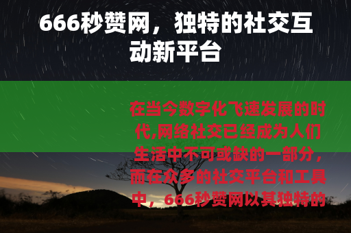 在当今数字化飞速发展的时代,网络社交已经成为人们生活中不可或缺的一部分,而在众多的社交平台和工具中,666秒赞网以其独特的功能和魅力,吸引了越来越多用户的关注。