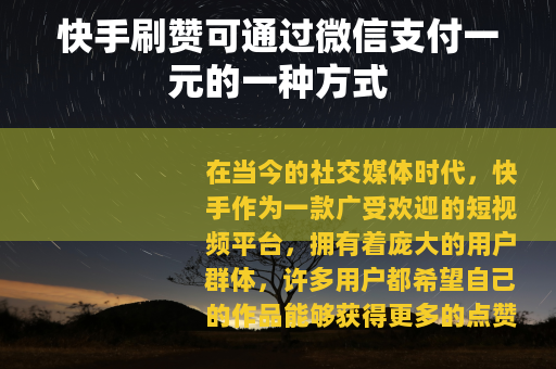 在当今的社交媒体时代,快手作为一款广受欢迎的短视频平台,拥有着庞大的用户群体,许多用户都希望自己的作品能够获得更多的点赞,以增加作品的曝光度和影响力,而在这个过程中,出现了一种通过微信支付一元即可在快手上刷赞的方式。