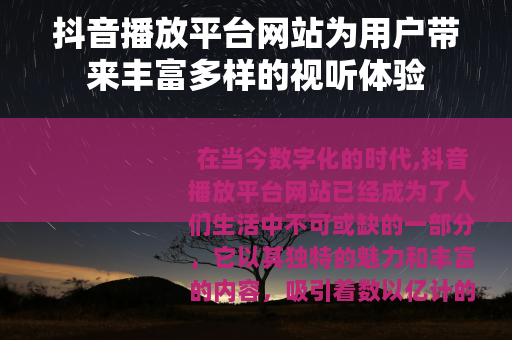 在当今数字化的时代,抖音播放平台网站已经成为了人们生活中不可或缺的一部分,它以其独特的魅力和丰富的内容,吸引着数以亿计的用户在这个虚拟的世界中尽情遨游。