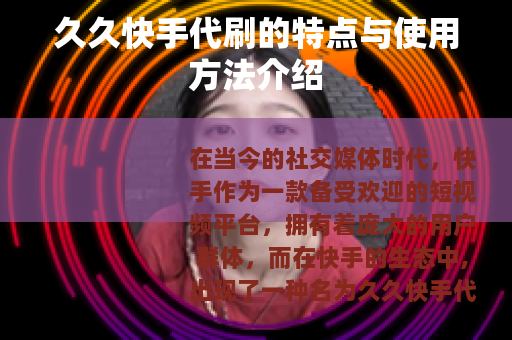 在当今的社交媒体时代,快手作为一款备受欢迎的短视频平台,拥有着庞大的用户群体,而在快手的生态中,出现了一种名为久久快手代刷的服务。