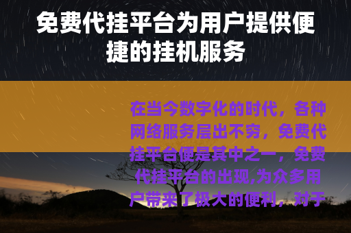 在当今数字化的时代,各种网络服务层出不穷,免费代挂平台便是其中之一,免费代挂平台的出现,为众多用户带来了极大的便利。