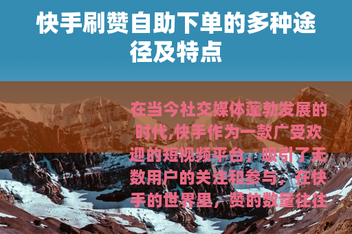 在当今社交媒体蓬勃发展的时代,快手作为一款广受欢迎的短视频平台,吸引了无数用户的关注和参与,在快手的世界里,赞的数量往往被视为衡量一个作品受欢迎程度的重要指标之一,快手刷赞自助下单便应运而生,成为了一些用户提升自己作品热度的一种选择。