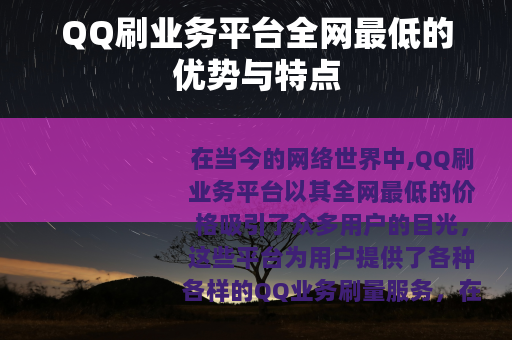 在当今的网络世界中,QQ刷业务平台以其全网最低的价格吸引了众多用户的目光,这些平台为用户提供了各种各样的QQ业务刷量服务,在一定程度上满足了用户对于QQ账号相关数据增长的需求。