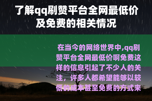 在当今的网络世界中,qq刷赞平台全网最低价啊免费这样的信息引起了不少人的关注,许多人都希望能够以较低的成本甚至免费的方式来提升自己在QQ空间等社交平台上的点赞数量,从而获得更多的人气和关注度。