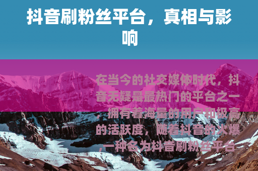 在当今的社交媒体时代,抖音无疑是最热门的平台之一,拥有着海量的用户和极高的活跃度,随着抖音的火爆,一种名为抖音刷粉丝平台的现象也悄然兴起。