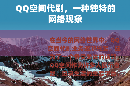 在当今的网络世界中,QQ空间代刷业务逐渐兴起,成为了一个备受关注的话题,QQ空间作为许多人展示自我、记录生活的重要平台,拥有着庞大的用户群体,而QQ空间代刷的出现,为一些希望提升自己空间热度和人气的用户提供了一种看似便捷的途径。