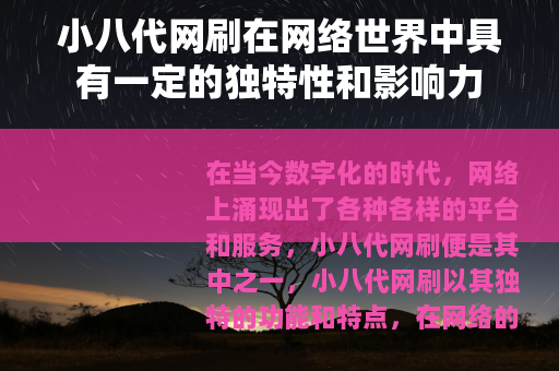 在当今数字化的时代,网络上涌现出了各种各样的平台和服务,小八代网刷便是其中之一,小八代网刷以其独特的功能和特点,在网络的众多领域中逐渐崭露头角,吸引了不少用户的关注。