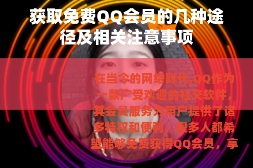 在当今的网络时代,QQ作为一款广受欢迎的社交软件,其会员服务为用户提供了诸多特权和便利,很多人都希望能够免费获得QQ会员,享受诸如等级加速、专属表情、红名显示等一系列的特殊待遇,以下就为大家介绍一些可能获取免费QQ会员的途径及相关情况。