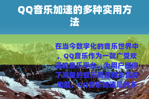 在当今数字化的音乐世界中,QQ音乐作为一款广受欢迎的音乐平台,为用户提供了海量的音乐资源和丰富的功能,QQ音乐加速是许多用户关注的一个重要方面,它能让我们更流畅地享受音乐,提升音乐体验。