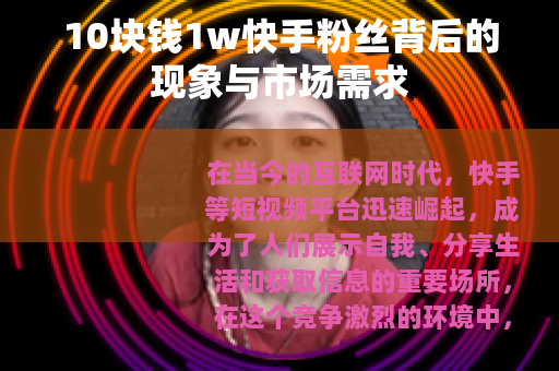 在当今的互联网时代,快手等短视频平台迅速崛起,成为了人们展示自我、分享生活和获取信息的重要场所,在这个竞争激烈的环境中,粉丝数量往往被视为衡量一个账号影响力和价值的重要指标之一,而“10块钱1w快手粉丝”这样的现象也随之出现,引发了广泛的关注和讨论。