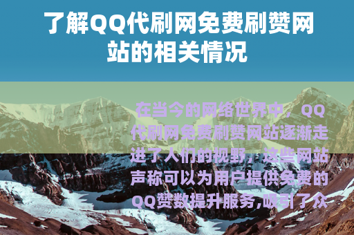在当今的网络世界中,QQ代刷网免费刷赞网站逐渐走进了人们的视野,这些网站声称可以为用户提供免费的QQ赞数提升服务,吸引了众多QQ用户的关注。