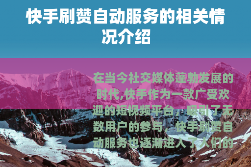在当今社交媒体蓬勃发展的时代,快手作为一款广受欢迎的短视频平台,吸引了无数用户的参与,快手刷赞自动服务也逐渐进入了人们的视野。
