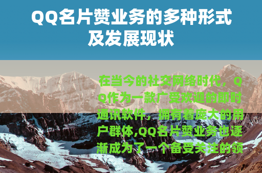 在当今的社交网络时代,QQ作为一款广受欢迎的即时通讯软件,拥有着庞大的用户群体,QQ名片赞业务也逐渐成为了一个备受关注的领域。