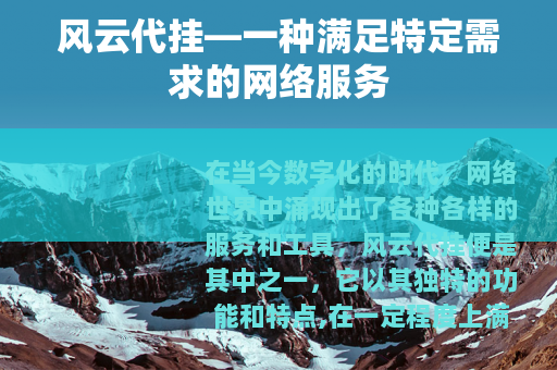 在当今数字化的时代,网络世界中涌现出了各种各样的服务和工具,风云代挂便是其中之一,它以其独特的功能和特点,在一定程度上满足了部分用户的需求。