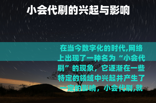 在当今数字化的时代,网络上出现了一种名为“小会代刷”的现象,它逐渐在一些特定的领域中兴起并产生了一定的影响。