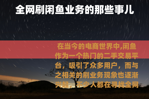在当今的电商世界中,闲鱼作为一个热门的二手交易平台,吸引了众多用户,而与之相关的刷业务现象也逐渐兴起,不少人都在寻找全网刷闲鱼业务最便宜的网站。
