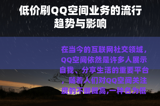 在当今的互联网社交领域,QQ空间依然是许多人展示自我、分享生活的重要平台,随着人们对QQ空间关注度的不断提高,一种名为低价刷QQ空间业务的现象逐渐兴起并在一定范围内流行开来。
