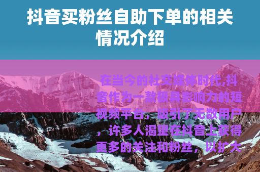 在当今的社交媒体时代,抖音作为一款极具影响力的短视频平台,吸引了无数用户,许多人渴望在抖音上获得更多的关注和粉丝,以扩大自己的影响力和实现各种目标,而抖音买粉丝自助下单这种方式也逐渐进入了人们的视野。