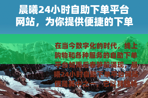 在当今数字化的时代,线上购物和各种服务的自助下单平台如雨后春笋般涌现,晨曦24小时自助下单平台网站便是其中之一,它以其独特的优势,为广大用户带来了全新的体验和便利。