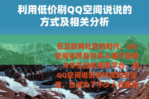 在互联网社交的时代,QQ空间依然是许多人展示自我、分享生活的重要平台,而QQ空间说说的热度和关注度,也成为了不少人在意的事情,低价刷QQ空间说说的现象逐渐兴起,吸引了众多用户的目光。