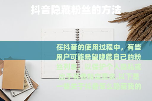 在抖音的使用过程中,有些用户可能希望隐藏自己的粉丝列表,以保护个人隐私或出于其他特定需求,以下是一些关于抖音怎么隐藏我的粉丝的方法。