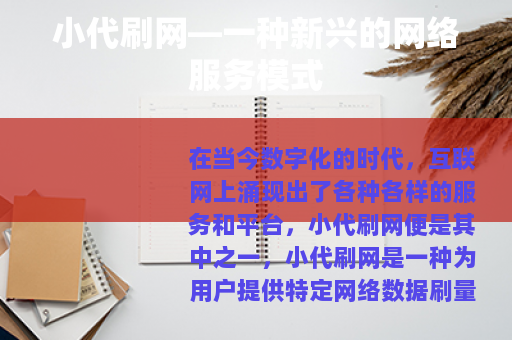 在当今数字化的时代,互联网上涌现出了各种各样的服务和平台,小代刷网便是其中之一,小代刷网是一种为用户提供特定网络数据刷量服务的平台,它在网络世界中逐渐崭露头角。