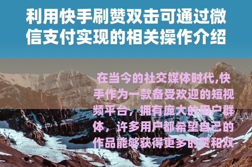 在当今的社交媒体时代,快手作为一款备受欢迎的短视频平台,拥有庞大的用户群体,许多用户都希望自己的作品能够获得更多的赞和双击,以此来增加作品的曝光度和人气,而微信支付则是一种便捷的在线支付方式,在很多交易场景中都发挥着重要作用。