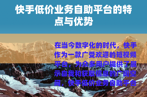 在当今数字化的时代,快手作为一款广受欢迎的短视频平台,为众多用户提供了展示自我和获取信息的广阔空间,快手低价业务自助平台也应运而生,为用户带来了一系列独特的价值和便利。