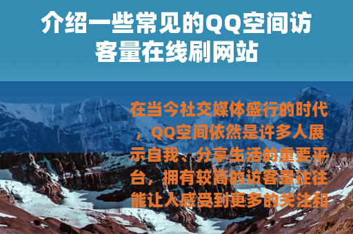 在当今社交媒体盛行的时代,QQ空间依然是许多人展示自我、分享生活的重要平台,拥有较高的访客量往往能让人感受到更多的关注和认可,不少人开始寻找能够提升QQ空间访客量的方法,而QQ空间访客量在线刷网站也应运而生。