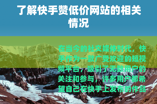 在当今的社交媒体时代,快手作为一款广受欢迎的短视频平台,吸引了无数用户的关注和参与,许多用户都希望自己在快手上发布的作品能够获得更多的赞,以此来增加作品的曝光度和影响力,而在这个需求的推动下,快手赞低价网站应运而生。